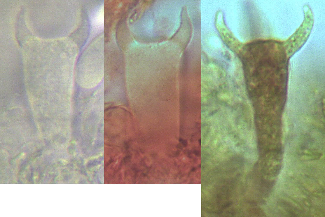 Zu ihm gehören die Hörner, die natürlich nichts anderes als die Sterigmen der Basidien sind, an denen die Sporen hängen: