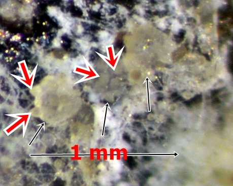 Nee, ich mein den rechts neben dem Froschlaich. Ungefähr 100 µm groß, quasi rechts vom "mm" nach oben...