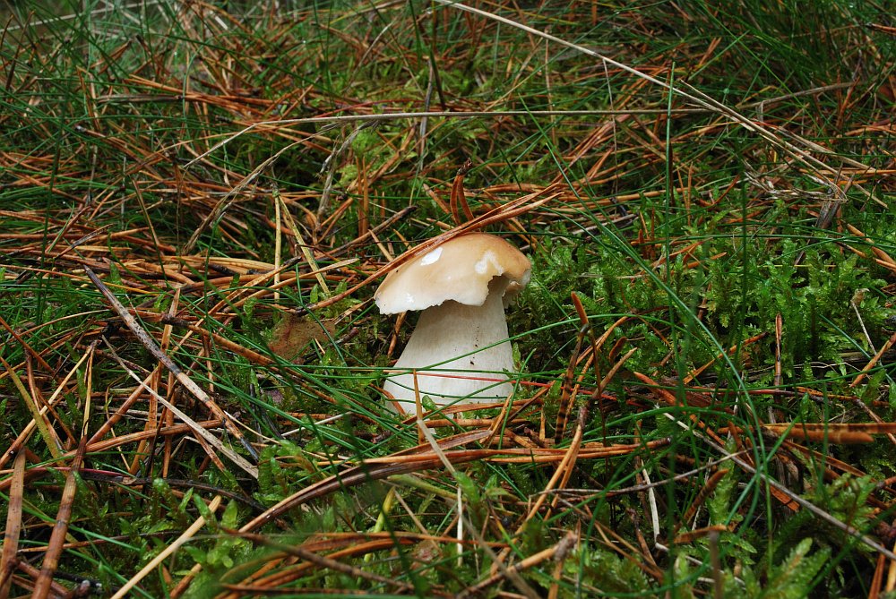 Toll, Wahnsinn. Nachdem ich diese nun fotografiert hatte ging ich wieder in Richtung Rad und Weg, da bemerkte ich einen weiteren Steini gut versteckt im Sandboden neben einen kleinen Butterpilz: