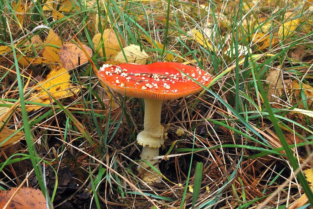Heute war mein Hauptziel ein Ex - NVA Platz der etwas weiter entfernt ist als meine anderen Steinpilzplätze (ca. zwei Stunden mit dem Rad) der aber von je her sehr zuverlässig ist. Angekommen bemerkte ich als erstes (aber erst zum Schluß fotografiert) diesen Fliegenpilz: