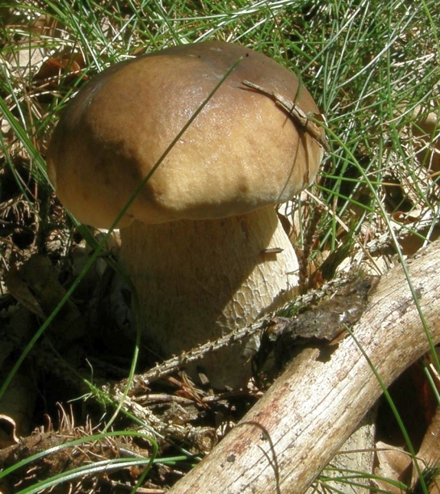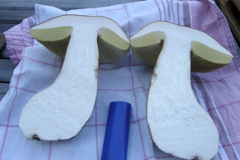 Lustigerweise sieht der Wieseltäubling (Russula mustelina) aus der Distanz bisweilen haargenau wie ein Steinpilz aus. Erst aus der Nähe sieht man dann die Lamellen. Ist aber nicht schlimm, der schmeckt fast genauso lecker.