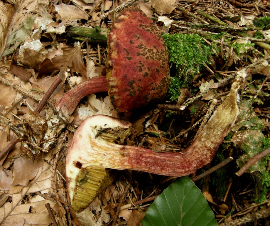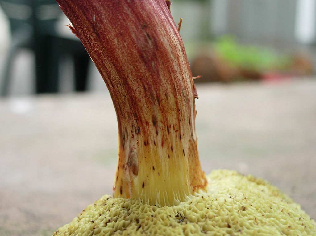 Ein wichtiges Unterscheidungsmerkmal zwischen X. chrysenteron und X. pruinatus ist das rote Stielfleisch bei chrysenteron. Bei pruinatus ist es gelb.
