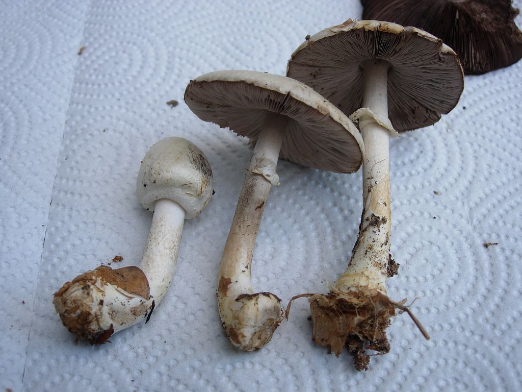 - kräftiger im Wuchs, vor allem mit etwas dickeren Stielen; Stielbasis deutlich knollig, meist sogar abgesetzt und häufig deutlich gekniet