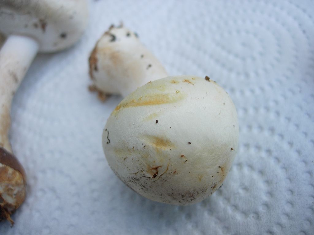 Der Karbol –“ Egerling (A. xanthoderma) unterscheidet sich durch seinen unangenehmen, chemischen Geruch (Karbol, Desinfektionsmittel, Heftpflaster, Krankenhaus) und durch eine ausgeprägte Gilbung in der Stielbasis. Wobei hier in der Literatur oft etwas steht wie: –žStielbasis läuft im Schnitt sofort chromgelb an,–œ was nicht immer stimmen muss. Die Gilbung kann aus eigener Erfahrung gerade bei Kälte auch mal blasser und langsamer verlaufen, bei starkem Madenbefall der Knolle auch garnicht mehr wahrnehmbar sein.
