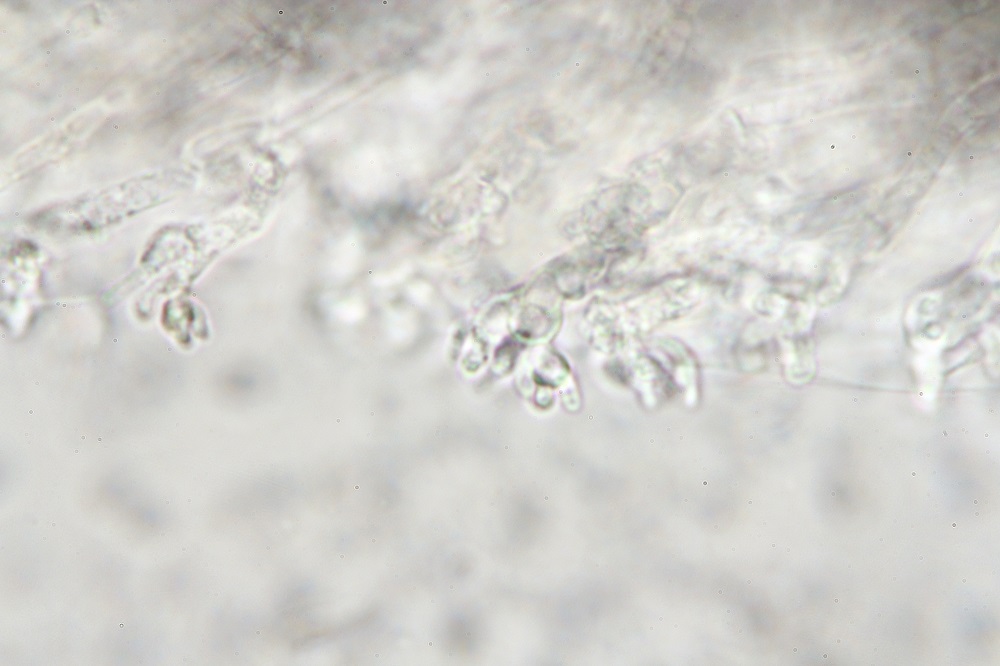 Fleisch: dünn, wäßrig, elastisch; weißlich, cremefarben oder gräulich, im Stiel gelblich, gelegentlich mit rötlichen oder bräunlichen Verfärbungen; Geruch ranzig mehlartig bis unbedeutend; Geschmack mild oder auch leicht schärflich