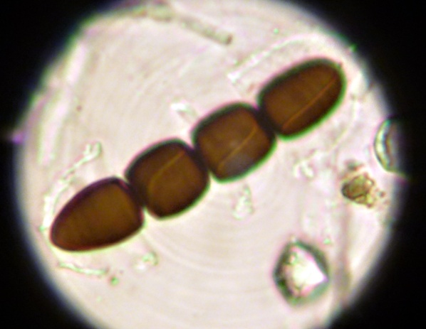 Pablo hat vor einigen Wochen ein paar Hasenküttel rübergeschickt. Diesen habe ich eine Sporormiella-Kur verpasst, die jetzt anscheinend die ersten Fruchtkörper bringt. Allerdings sehen die Sporen aus, wie ich sie bis jetzt von keinem meiner Sporormiella-Funde kenne. Daher denke ich, dass es etwas neues ist, außerhalb der S. intermedia-dubia usw. Ich denke hier an S. capybarae, denn der Fund passt sehr gut zur Beschreibung in Ahmed&Cain, insbesondere was die Sporenmaße angeht. Als auffallende Merkmale kann ich noch die Keimspalte sowie die unterschiedliche Form der Sporenendzellen erwähnen. Ich hoffe, die fast raketenartige Form kommt auf den Bildern zur Geltung.
