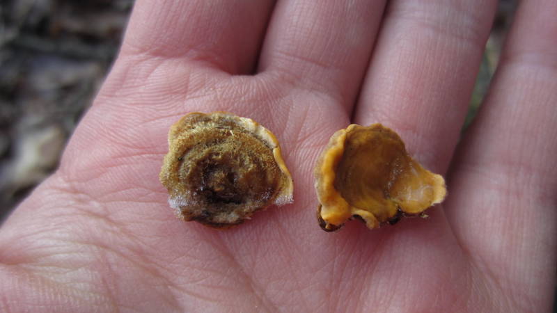 Es ist für mich unklar, ob hier sich ggf. um mehrere verschiedene (Rinden?)Pilze handelt.