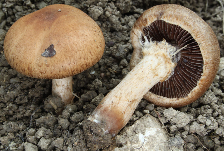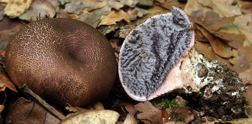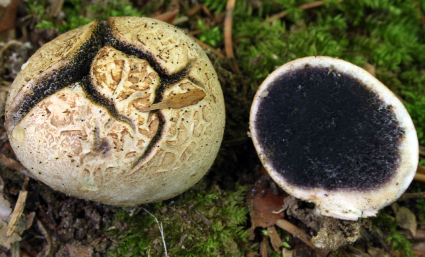 Auffälligkeiten: Die reifen FK waren relativ klein (ca. 4 cm) und hatten einen relativ kleinen Stielansatz. Ich würde vielleicht auf Scleroderma areolatum tippen?