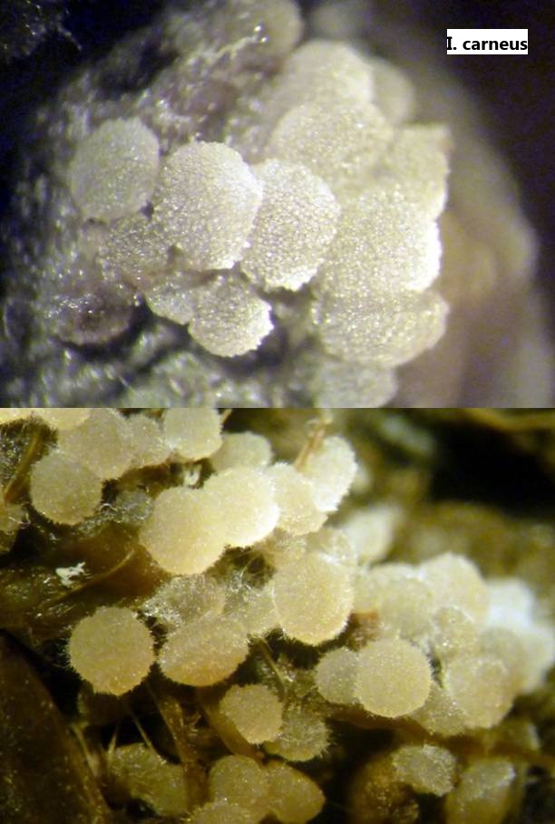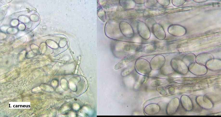 Die Paraphysen haben deutlich erkennbare, karotinoide Inhalte. Die Ascusspitzen sind viel rundlicher als bei I. carneus.