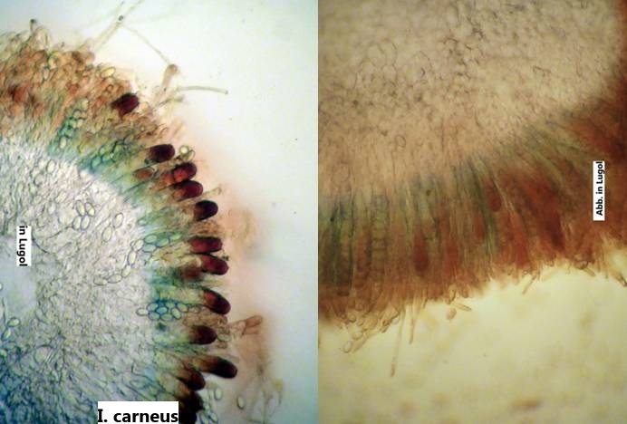 Mit Lugol trat die typische Orange-Blau- Färbung auf, allerdings wesentlich schwächer als bei I. carneus.