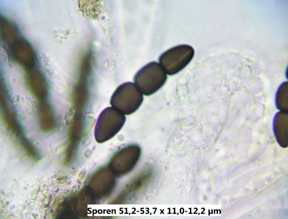 Aber die deutlich schräge Septierung und die exakt parallele Keimspalte brachten dann S. grandispora ins Spiel.