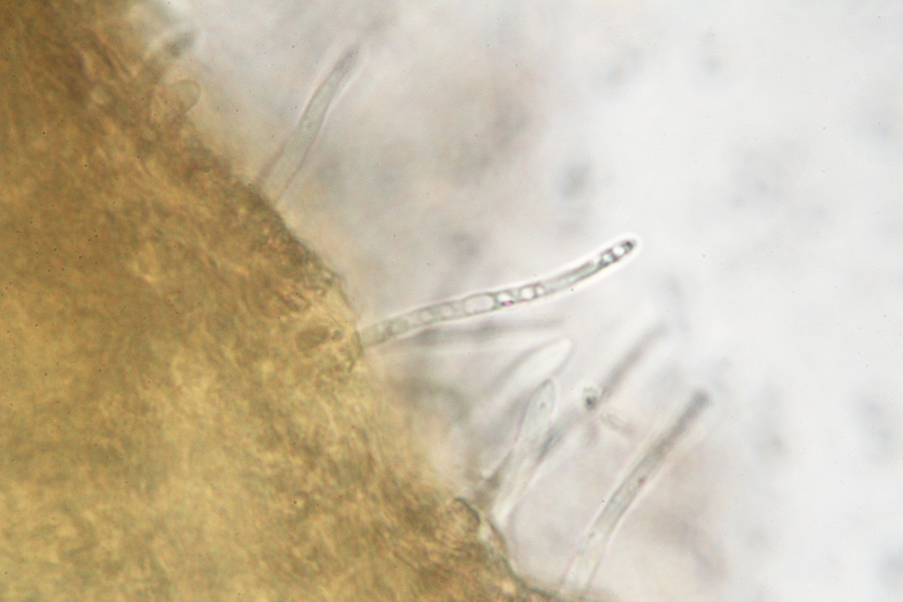 Lamellen: zimtfarben, ockerbräunlich, Schneiden oft etwas heller; recht gedrängt; am Grunde anastomosierend; scharf vom Stiel abgegrenzt; Schneiden klebrig