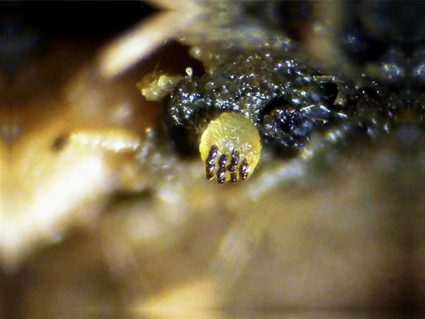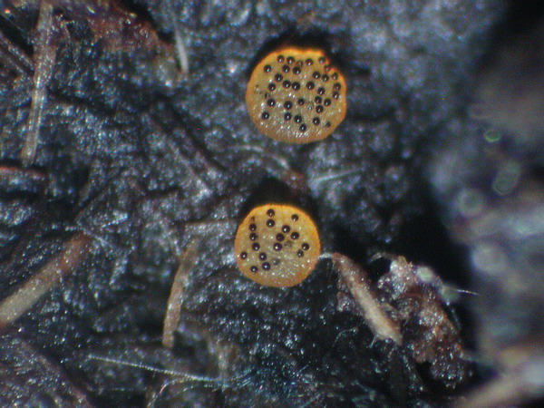 Die Apothecien sind dunkelgelb, fast hell-honigfarben.