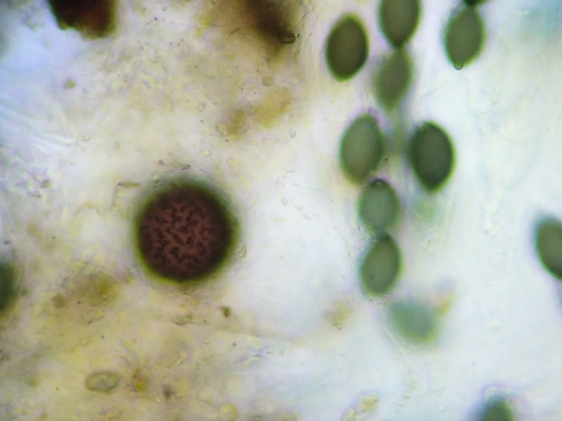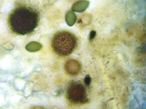 Die Fuchslosung, die ich grade untersuche ist durch und durch mit Sporen von Elaphomyces muricatus (Stachelige Hirschtrüffel) durchsetzt.