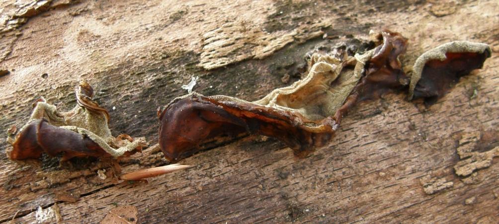 Danach sollte trotz des Alters die Konsistenz besser bewertbar sein ob gallertig oder korkig-lederig. Sicherlich sind dann auch Fruchtschicht-Strukturen wieder besser zu sehen (falls ich mit A. mesenterica recht hätte).