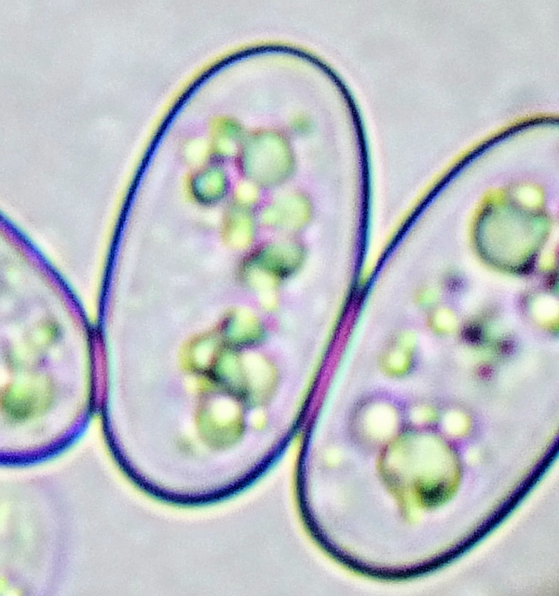 Die Sporen sind größtensteils ca. 25x12,5 µm groß gibt aber auch einige bis 35x12,5 oder auch kleinere (habe ich leider nicht ausgemessen)