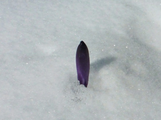 Irre, der kleine Krokus, der sich durch den Schnee zur Sonne strebt! Gib nicht auf! Der Frühling ist bald da! -