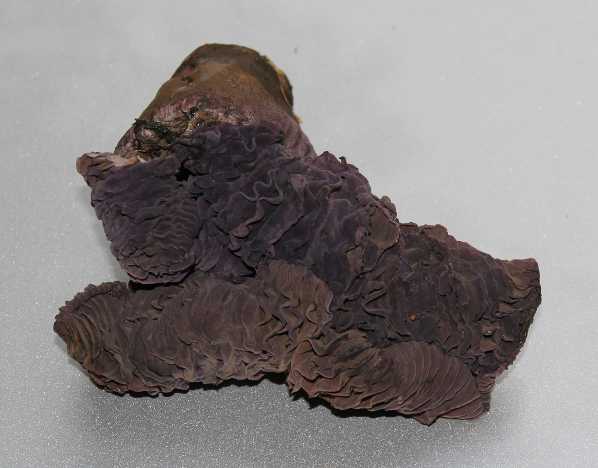 Heute habe ich den unten abgebildeten, extrem schrumpeligen Gesellen gefunden. Es ahndelt sich wohl um einen Violetten Schleierling, denn solche in normaler Form fanden sich in seiner Gesellschaft.