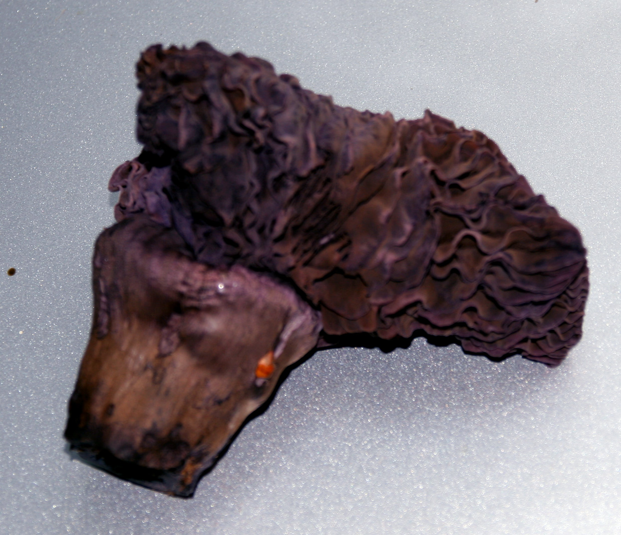 Heute habe ich den unten abgebildeten, extrem schrumpeligen Gesellen gefunden. Es ahndelt sich wohl um einen Violetten Schleierling, denn solche in normaler Form fanden sich in seiner Gesellschaft.