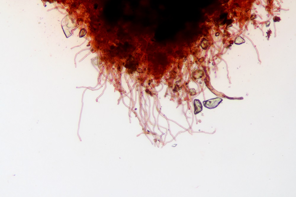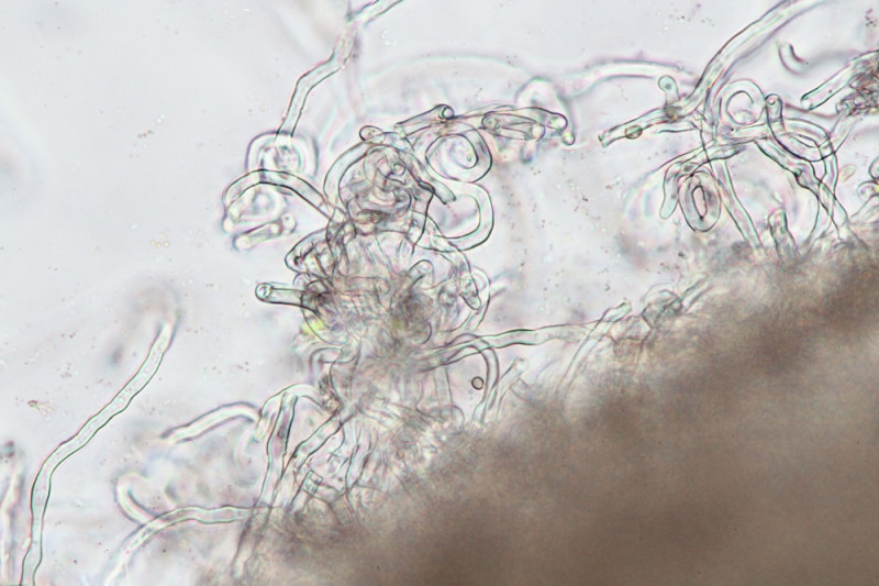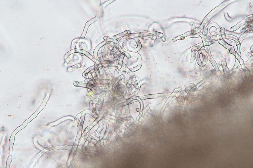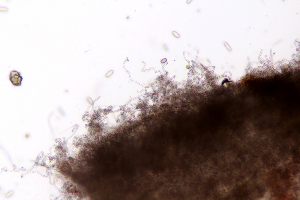 Als wichtige Bestimmungsmerkmale möchte ich die "korkenzieherartig" gewundenen Haare auf der Aussenseite, sowie die Konidienabschnürung bei Überreife (Keimung) erwähnen.