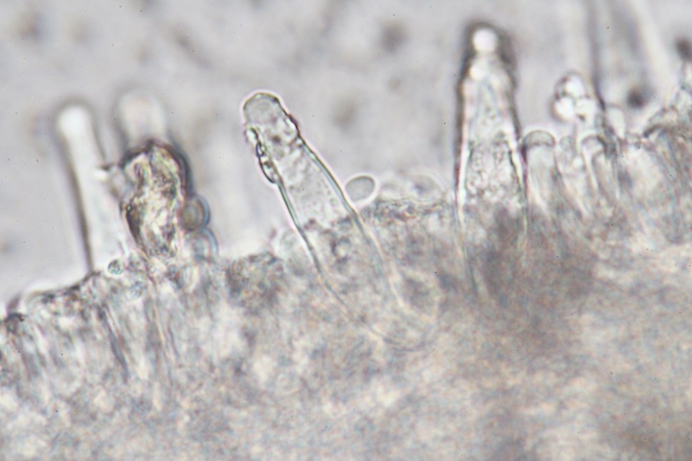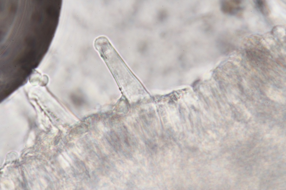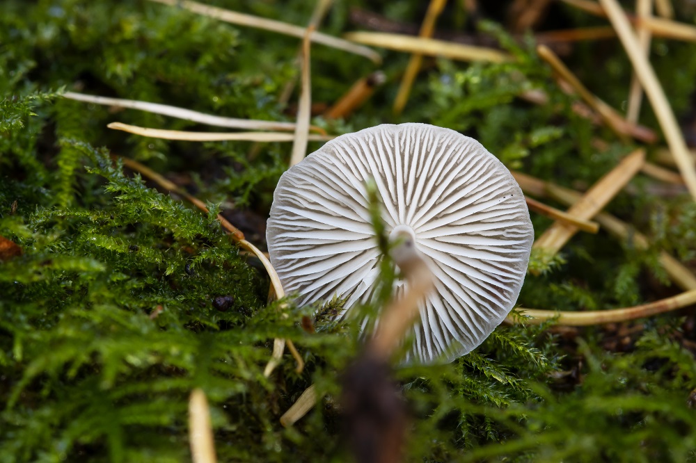 Lamellen: weißlich bis grau, recht eng stehend, untermischt, fast frei