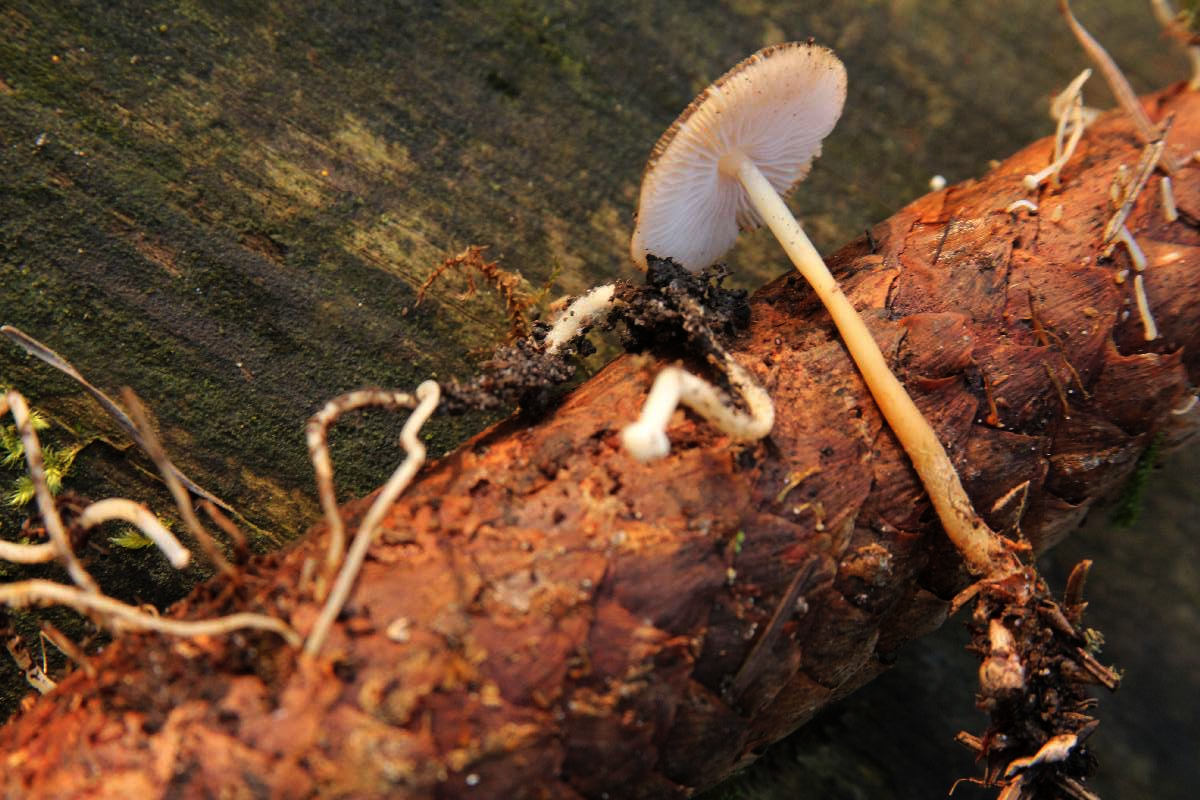 >Mycena strobilicola = Fichtenzapfenhelmling<