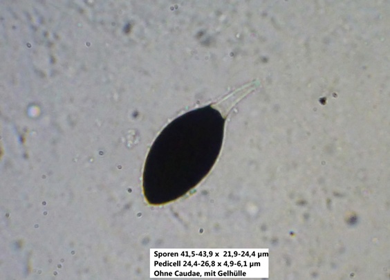 Die feine, die Sporen einhüllende Gelhülle, spricht gleichfalls für die Art.