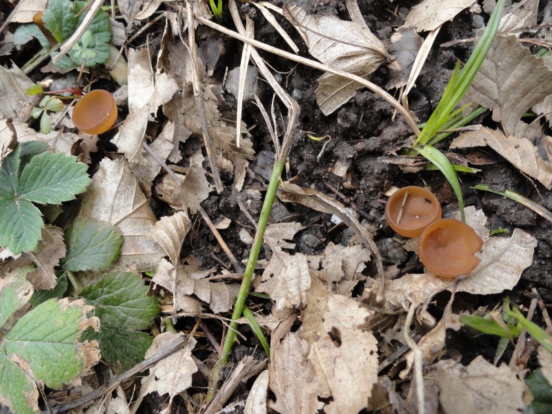 wo die wachsen gibts natürlich auch den Anemonenbecherling (Dumontinia tuberosa)