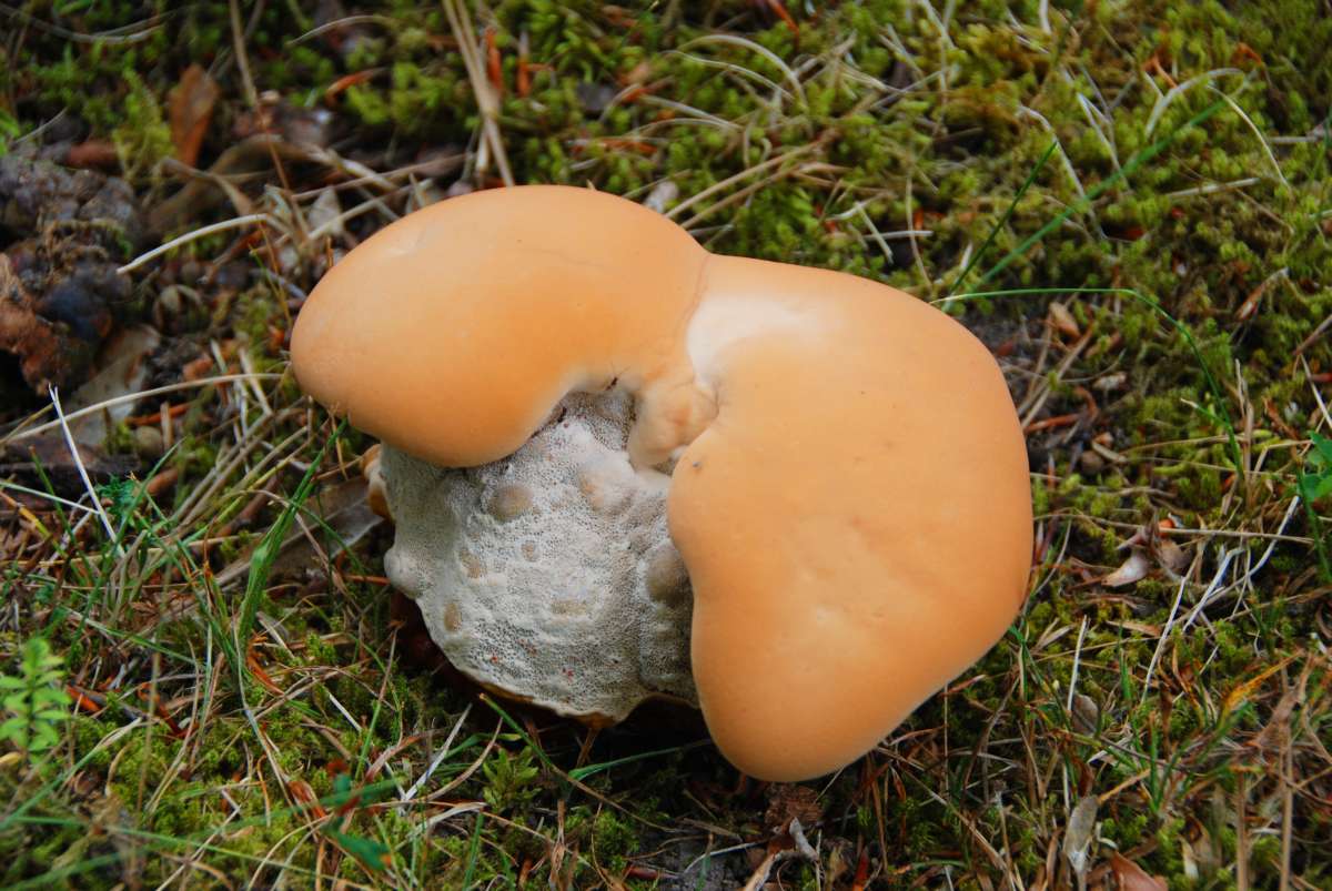 Die Pilze sind sehr fest und die Oberfläche des Hutes ist fast glatt. Es bilden sich leichte, dunkle Druckstellen wenn man stärker mit dem Finger draufdrückt. Ich nehme an, dass sich die Pilze von Holz, evtl. nahe unter der Erdoberfläche liegenden Wurzel ernähren.