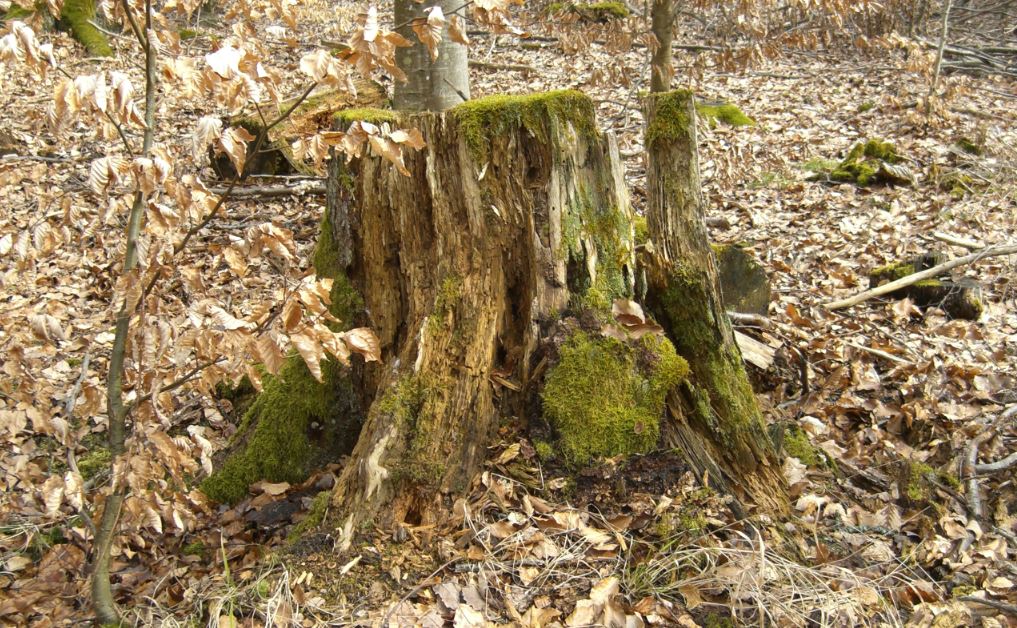Substrat: Entgegen den Buchen, die zu sehen sind, dürfte das Substrat Nadelholz, vermutlich Fichte sein. Sie wuchsen dort zig Meter entlang des Weges, offensichtlich durch die Forstwirtschaft gesetzt. Den Stumpf ordne ich von daher auch den Fichten zu, dafür sprach auch das an Struktur und Faserung, was vom Baum noch übrig ist.