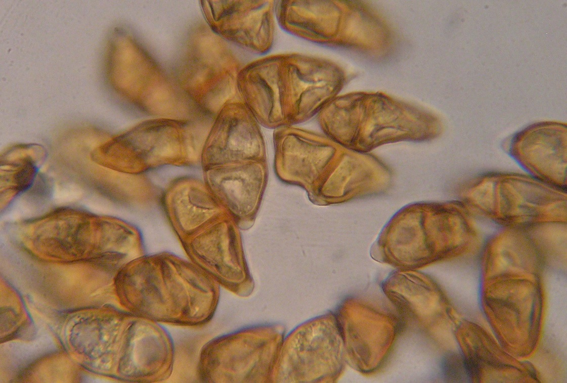 Mikroskopisch zeigen sich die für die Gattung Puccinia typischen zweizelligen Teliosporen (bei der Gattung Uromyces sind die Teliosporen immer einzellig). Sie haben auf der Spitze eine kleine durchsichtige Papille sitzen.