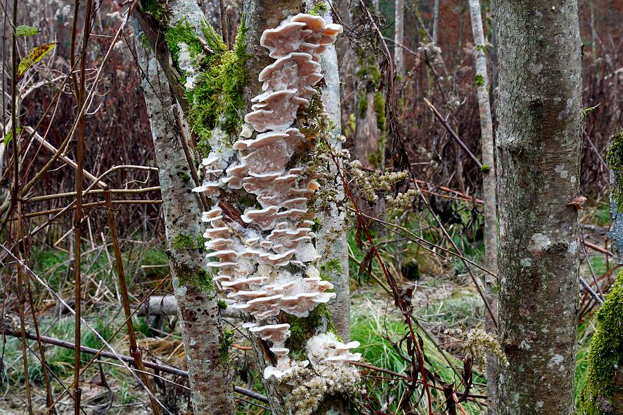 Die trockengefrosteten Seitlinge nahm ich ins Visier, als mir noch weitere Pilze ins Auge stachen.