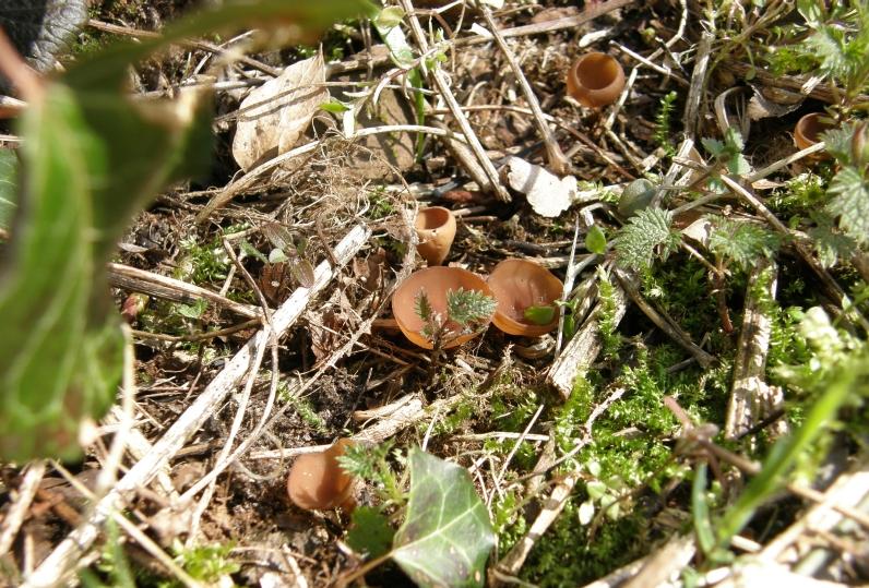 Und dann - eine Überraschung: Es reiht sich Becherling an Becherling... Es ist Sclerotinia tuberosa (Anemonen - Becherling) - für mich eine Premiere und ein Erstfund (mein erster Becherling überhaupt)!