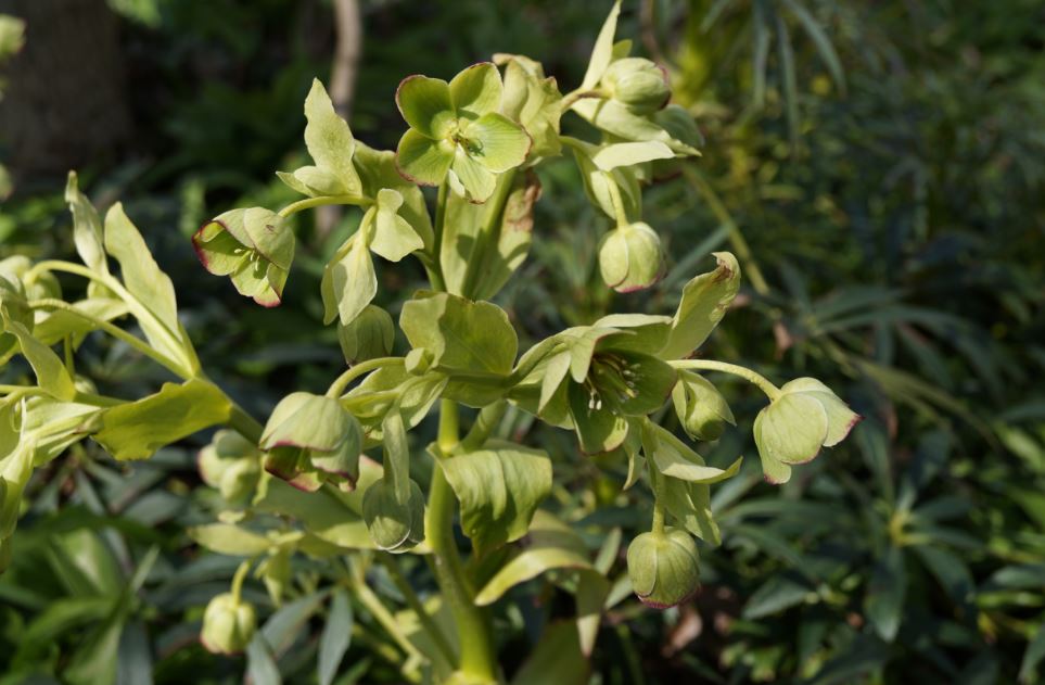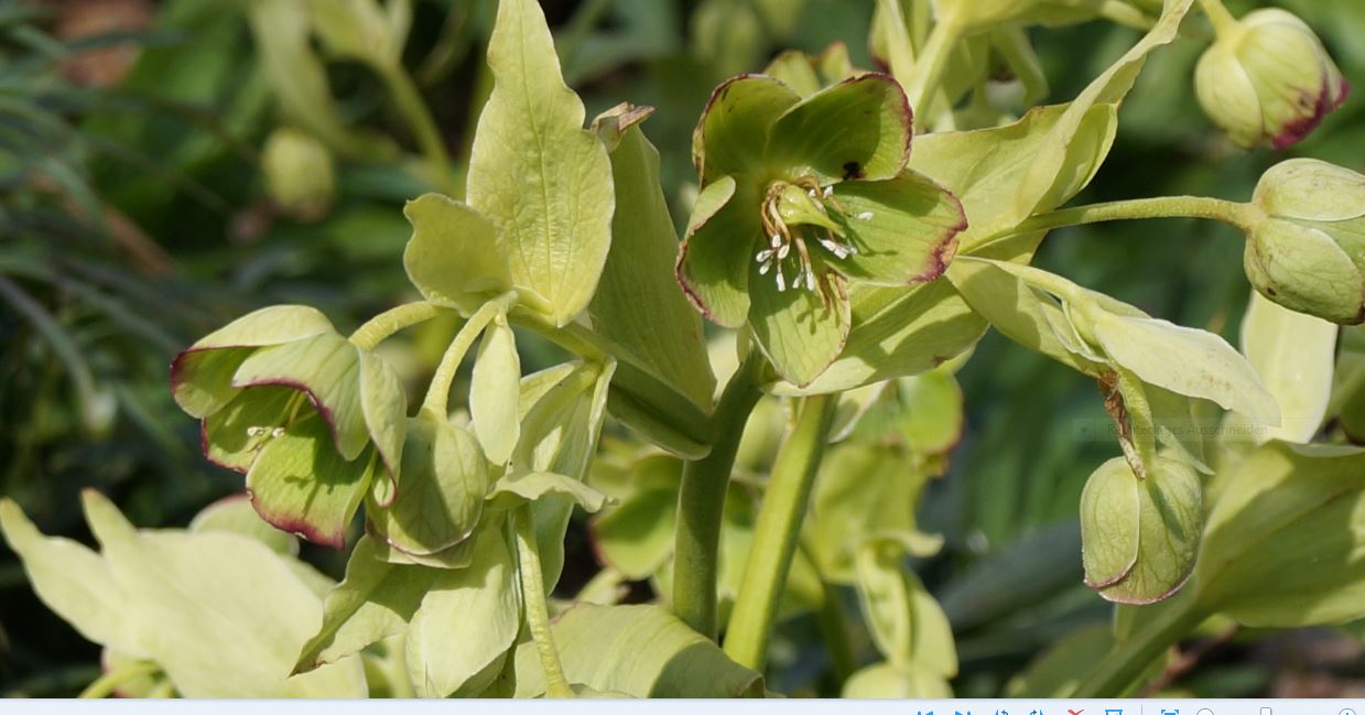 Die hübsche, an eine Pfingstrose erinnernde Pflanze, sollte die Nieswurz (Helleborus foetidus) sein. Vorsicht! Stark giftig!