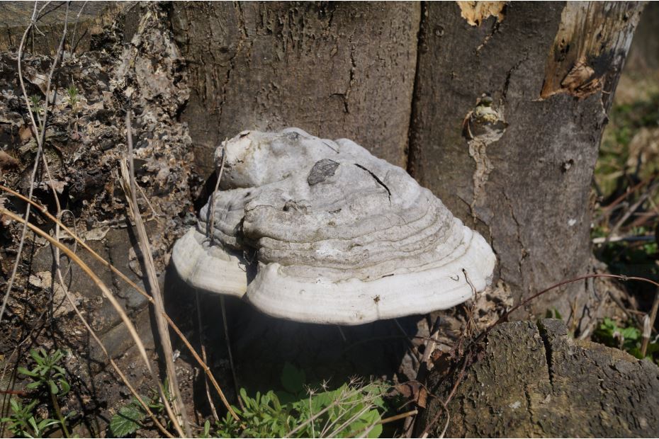 –¦ um zu den Pilzen zu gelangen, wie z. B. diesen Flachen Lackporlingen (Ganoderma applanatum) –¦
