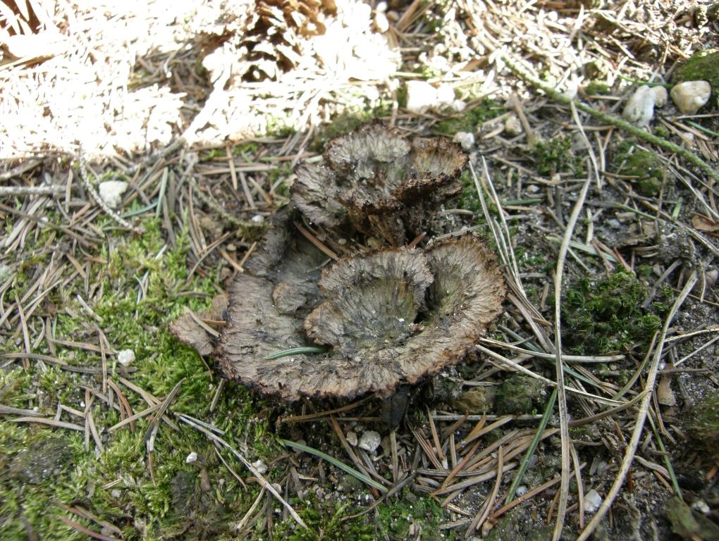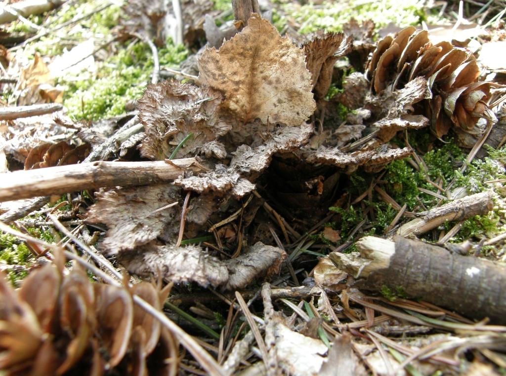 Zurück zu den Trockenpilzen. Dieser gestern noch Unbekannte im Nadelwald, um Ästchen und Zweige, was aufgrund seiner charkteristischen Form schnell zu finden... Erd-Warzenpilz, Thelephora terrestris