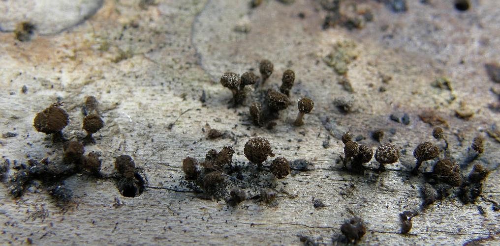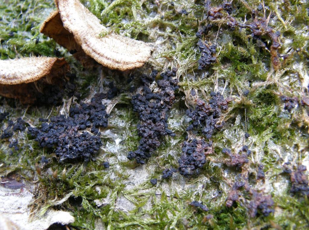 Nur leider wurde mir dann noch klar, daß es zum normalen Erdwarzenpilz (Telephora terrestris) noch einen Doppelgänger gibt: den Trichter - Warzenpilz, Telephora caryophyllea. Ob der im knochentrockenen Zustand auch so aussehen kann, ist natürlich die Frage. Sehr selten ist er offenbar auch. Insgesamt scheint es schon auf Telephora terrestris hinauszulaufen.