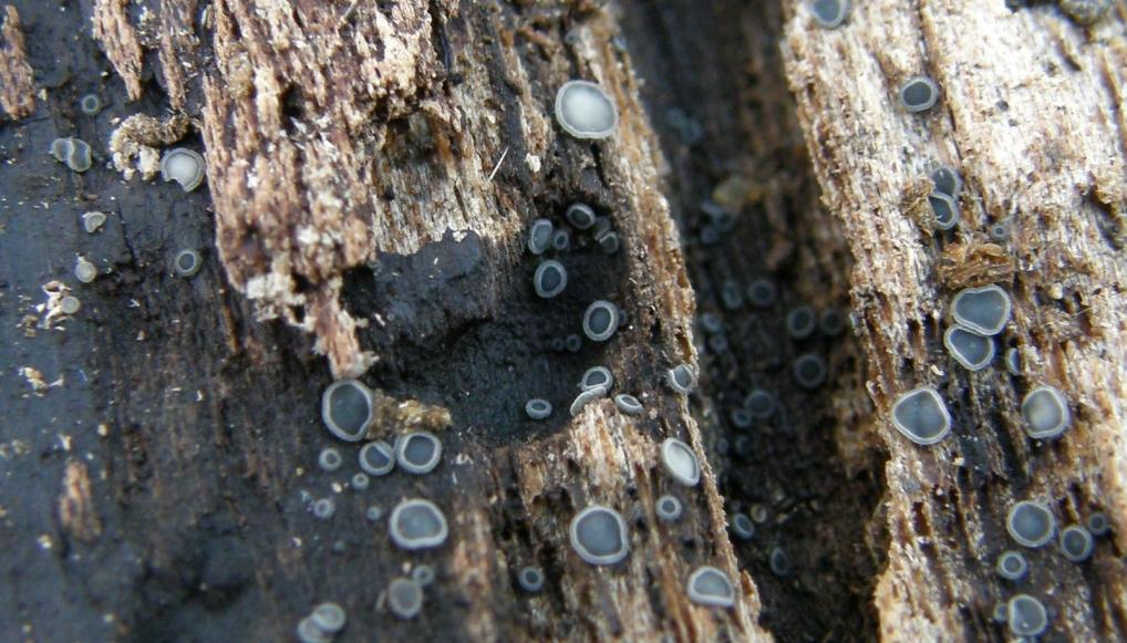 06: Mehr Ascos! Unter Stämmen von Buche (oder Eiche?) gab's Becherchen zu hauf. Gerne Vergesellschaftet: Mollisias und Orbilias. Viele bunte Smarties, sozusagen.