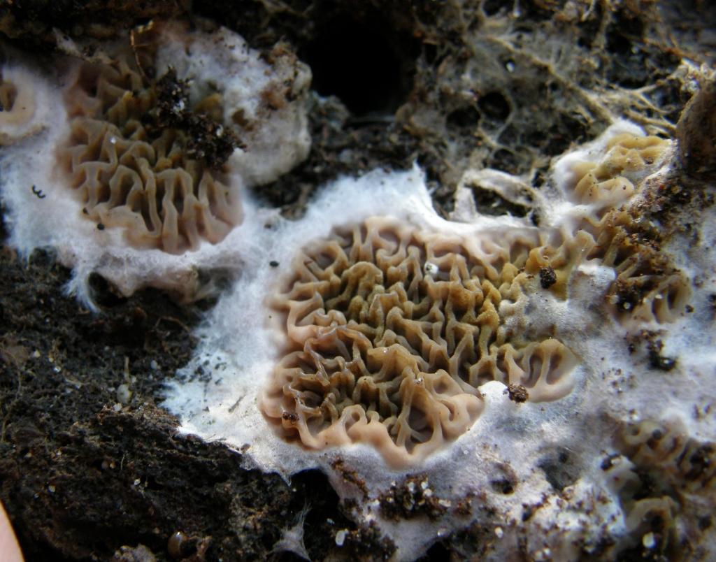 Anna vermutet einen wilden Hausschwamm. Ich sage, es ist die Erdbodenmorchel !!!!