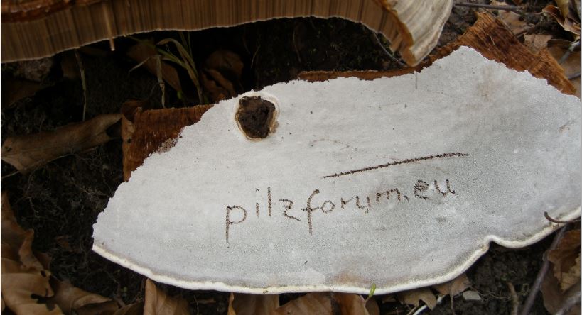 Einen Gruß ans Forum. An die Gemeinschaft. Käfer von unten. Lackporling. Wie wir von Pablo erfahren durften, verfärbt der nicht, sondern die Schicht darunter kommt beim "Kratzen" hervor.