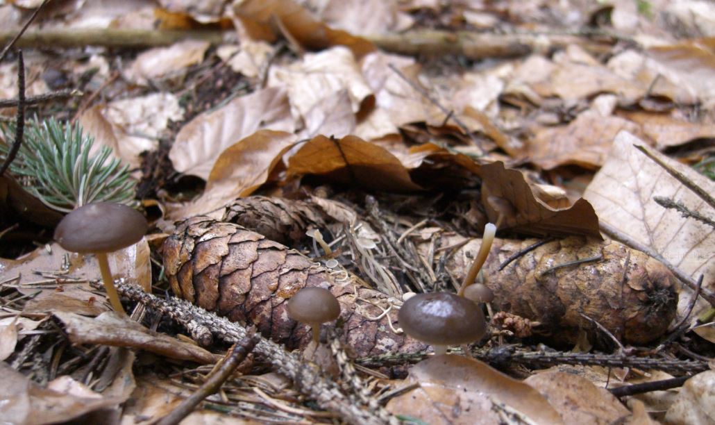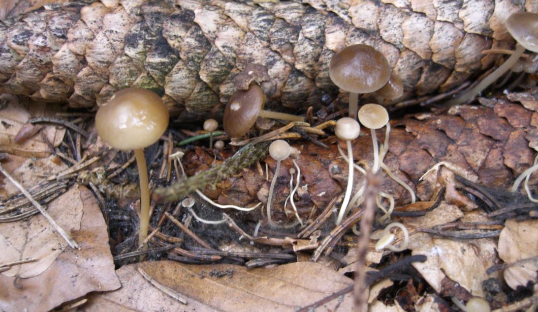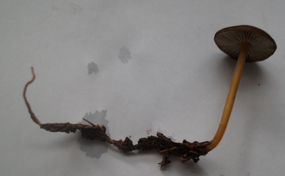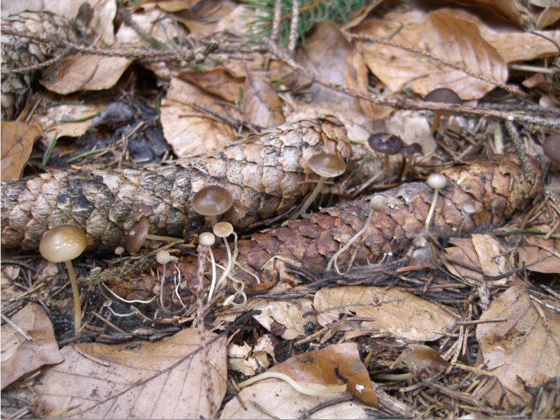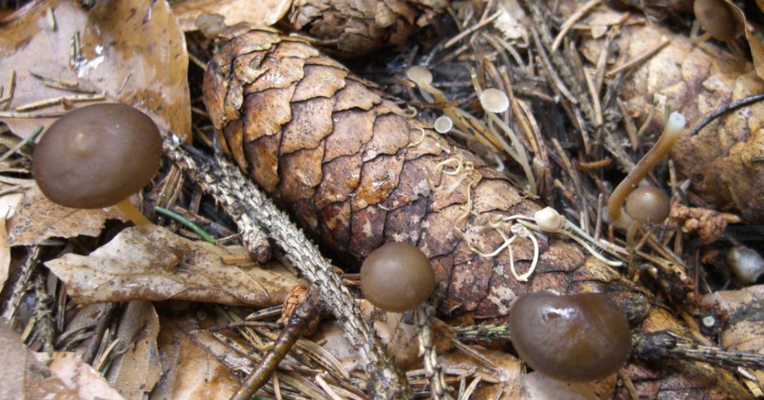 Die "Wurzeln" waren fast allesamt in unmittelbarer Nähe von Fichtenzapfen. Es schien, als wären sie herum gewickelt. Das mit dem Zapfen verbundene Myzel muss extrem fein sein, eine direkte Verbindungsstelle zu entdecken gelang mir nicht.