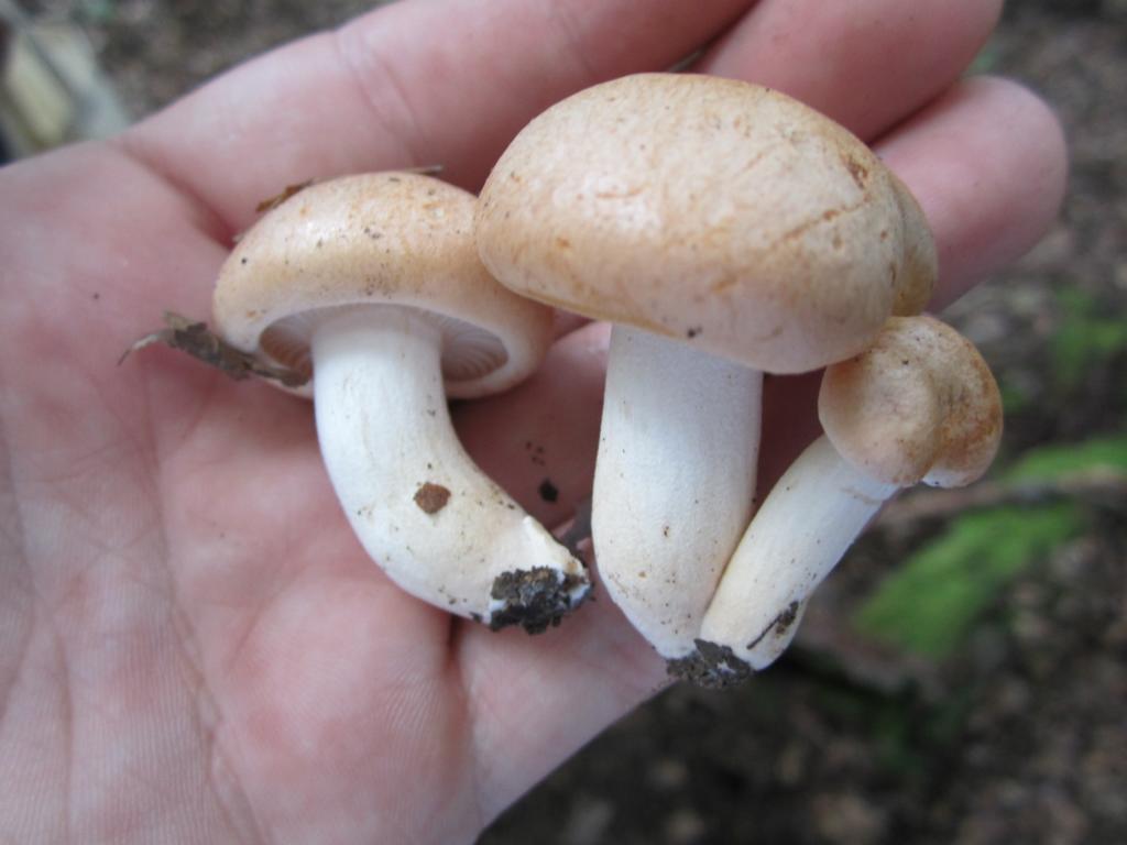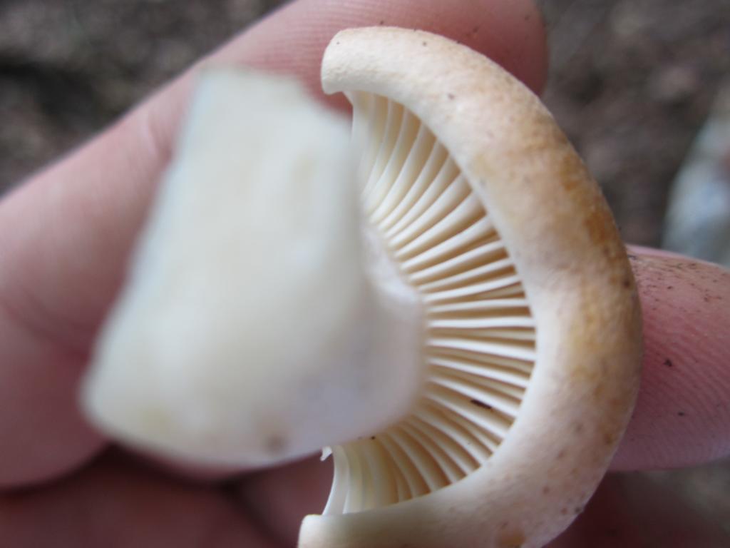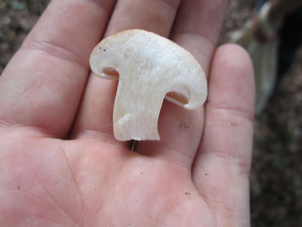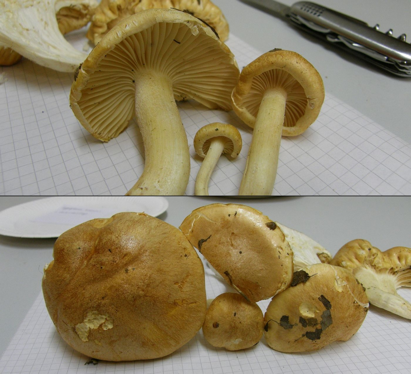 -> Insgesamt heller und größer, Hut bis 15 cm, süßlicher Geruch und milder, oft fader Geschmack, essbar aber nicht wohlschmeckend.