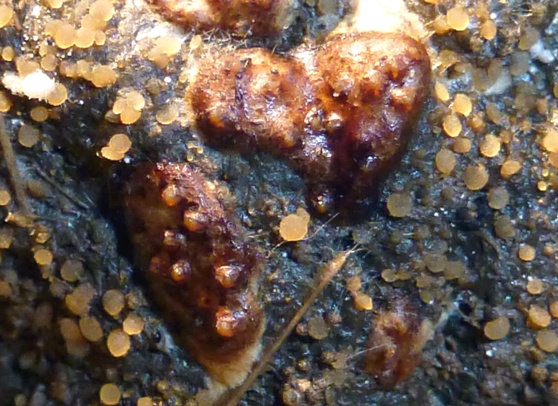 Auf recht frischem Schafdung, umzingelt von Iodophanus carneus, zeigt sich mal wieder Selinia pulchra.