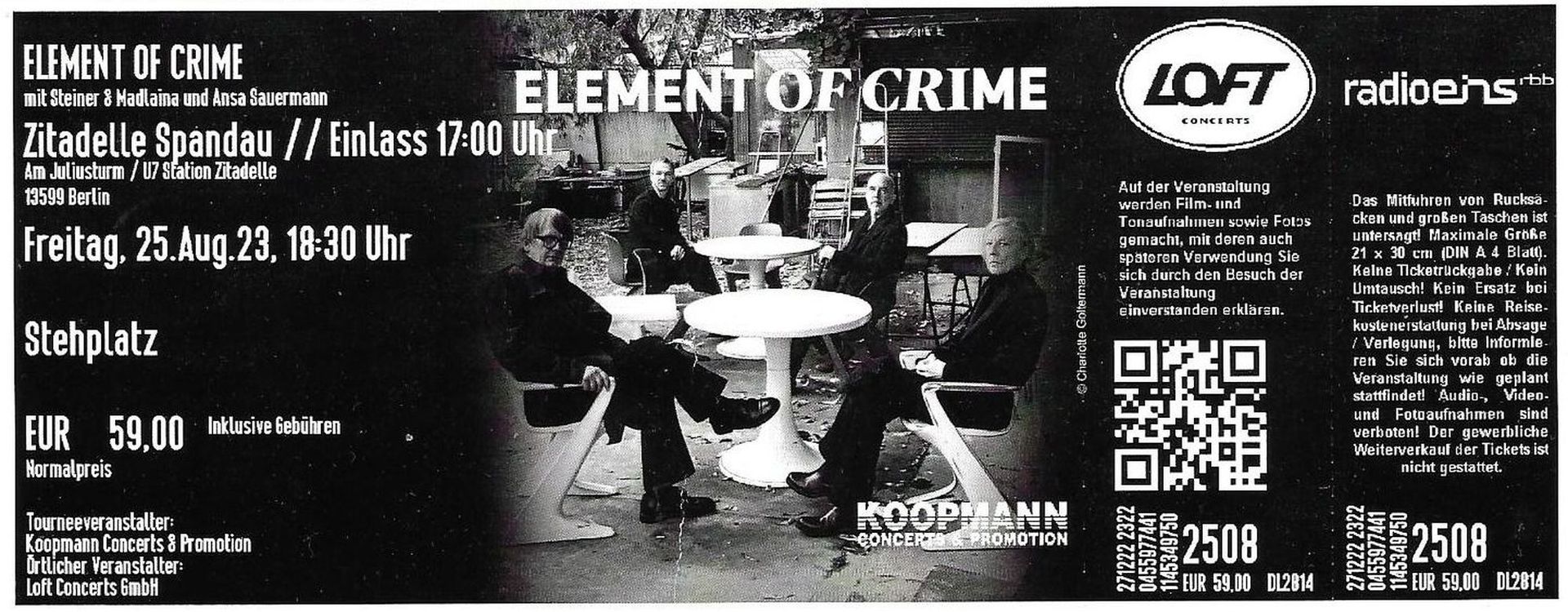 Wer Lust auf deutschsprachige Rockmusik mit guten bis genialen Texten hat, sollte mal in die folgenden Aufnahmen von Element Of Crime um den umtriebigen Musiker und Autor Sven Regener (Herr Lehmann) hineinhören. Wie nennt man sowas? Deutschsprachigen Chansonrock, vielleicht?