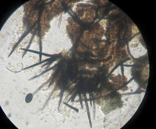 Bei diesem frb denke ich an Coniochaeta scatigena. Die sporen sind 16,5-20x11-13 µm im Wasser. Die braune Hare sind 57-74 µm. Ich denke an J-. Die Kiempore lauft von ober bis unter. Auf Pferdedung. Wer kann mir sagen ob ich richtig denke?