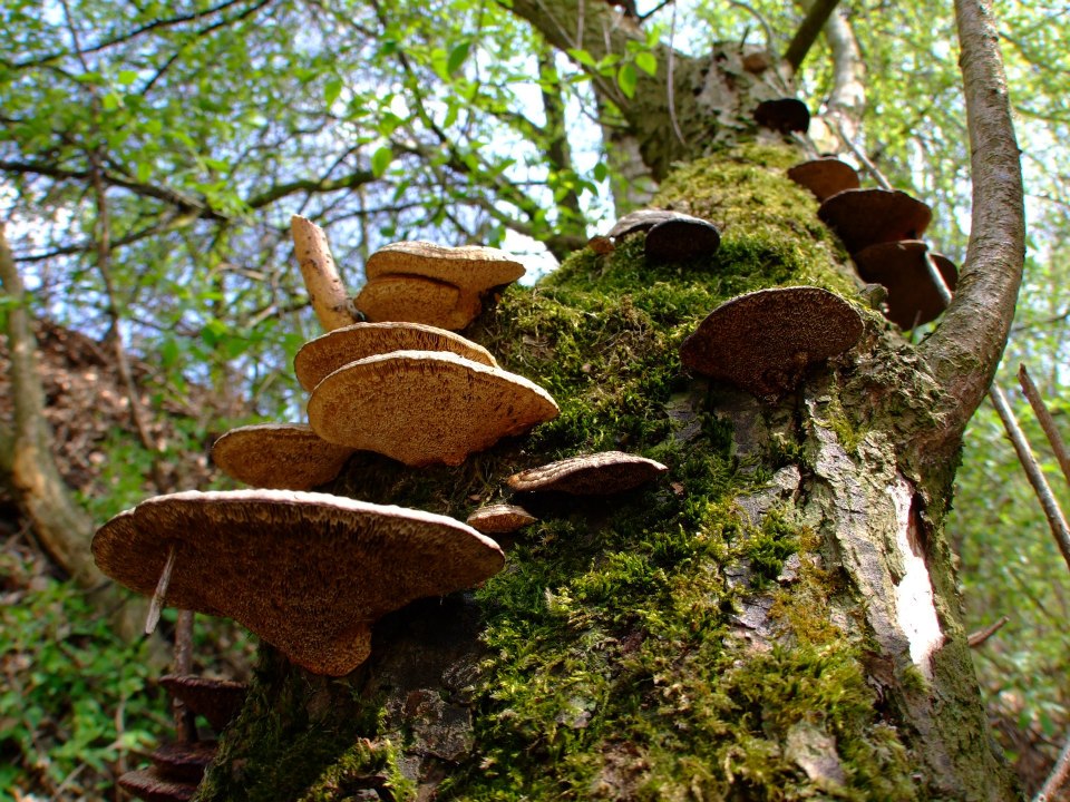 könnt ihr mir bei diesem Baumpilz helfen? Ist in einem reinen Laubwald aufgenommen, die Pilze sehen schon alt aus. Zunderschwamm nicht, für mich sieht das wie ein Lackporling oder sowas aus.