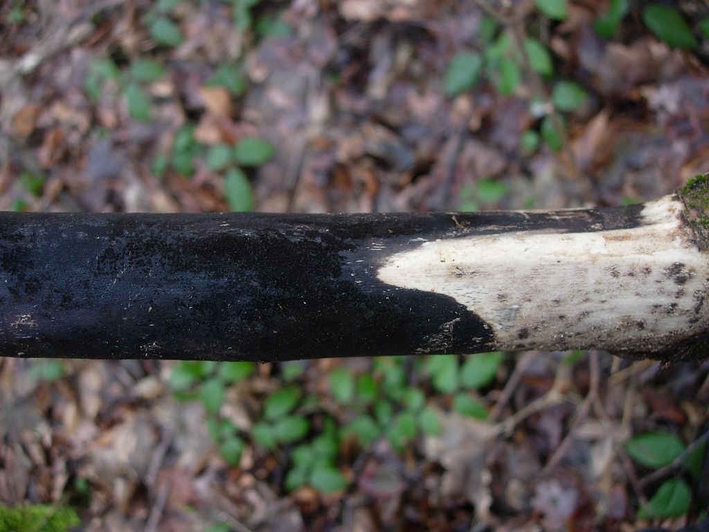 An diesen teilberindeten Stücken sah ich einen Pilz, den ich für den (oder einen der) Verursacher halte.