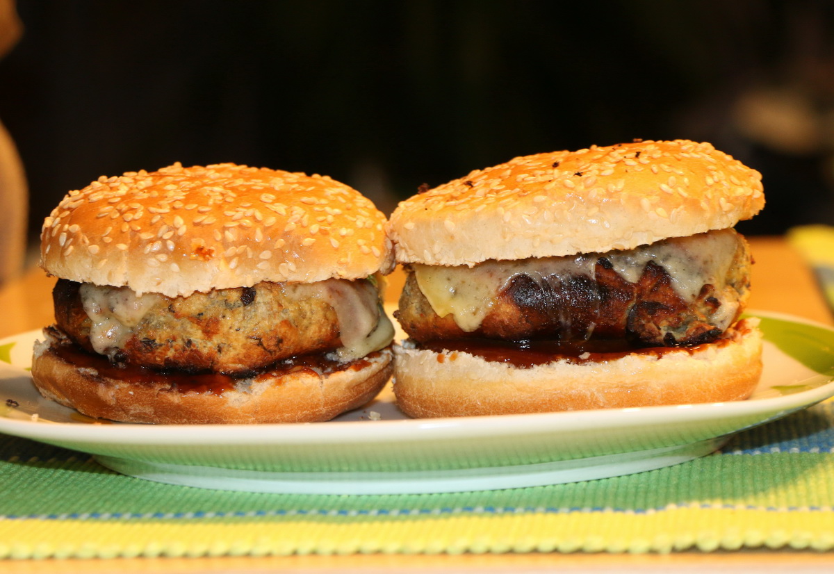 Die Pilze in einer Schüssel mit den Eiern vermengen, dann salzen und pfeffern und curryen (Nicht zur Konjugation empfohlen). So viel Paniermehl hinzugeben und rühren, bis eine feste, formbare, von alleine nicht mehr zerfließende Masse entsteht. Vorzugsweise sollte man die Masse mit einer Gabel noch gut durchdrücken. Anschließend vier flache Brätlinge daraus formen. Auf dem Grill brauchen die Brätlinge nur einige Minuten auf jeder Seite, im Prinzip muß nur das Ei stocken. Die Burger können nach Belieben belegt werden. Ich habe die Brätlinge noch auf dem Grill mit Käse belegt, an den Rand des Rostes gelegt und bei geschlossenem Deckel noch einige Minuten überbacken.