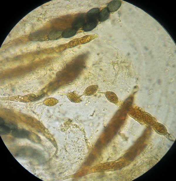 Könnte dies ein Podospora vesticola sein? Eigenlich ist die Größe meiner Spuren vieleicht nicht die Richtige. Die Suren sind (bei mir) 23-28x13 µm, im wasser, auf Pferdedung.