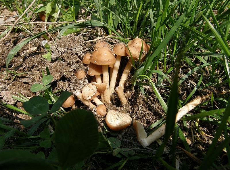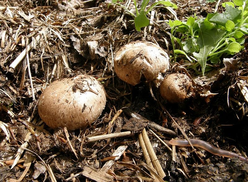Nämlich Egerlinge, Agaricus spec., ich denke da an Kompostegerlinge, Agaricus vaporarius, aber es gibt da sicherlich noch andere Möglichkeiten...